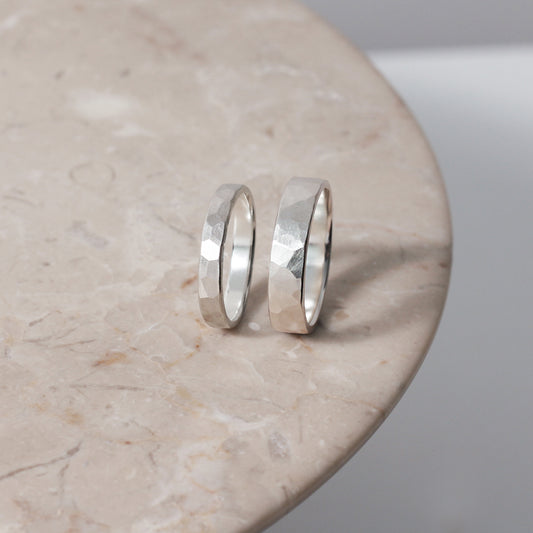Brushed Hammered Ring - Silver