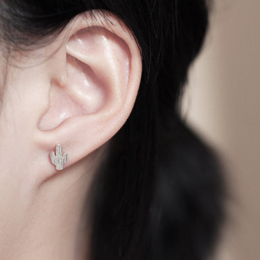 Cactus Stud Earrings - Silver