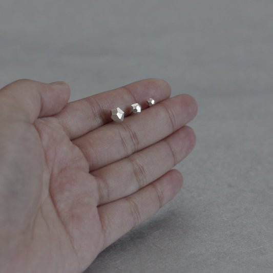 Geometric Polyhedron Faceted Stud Earrings - Silver