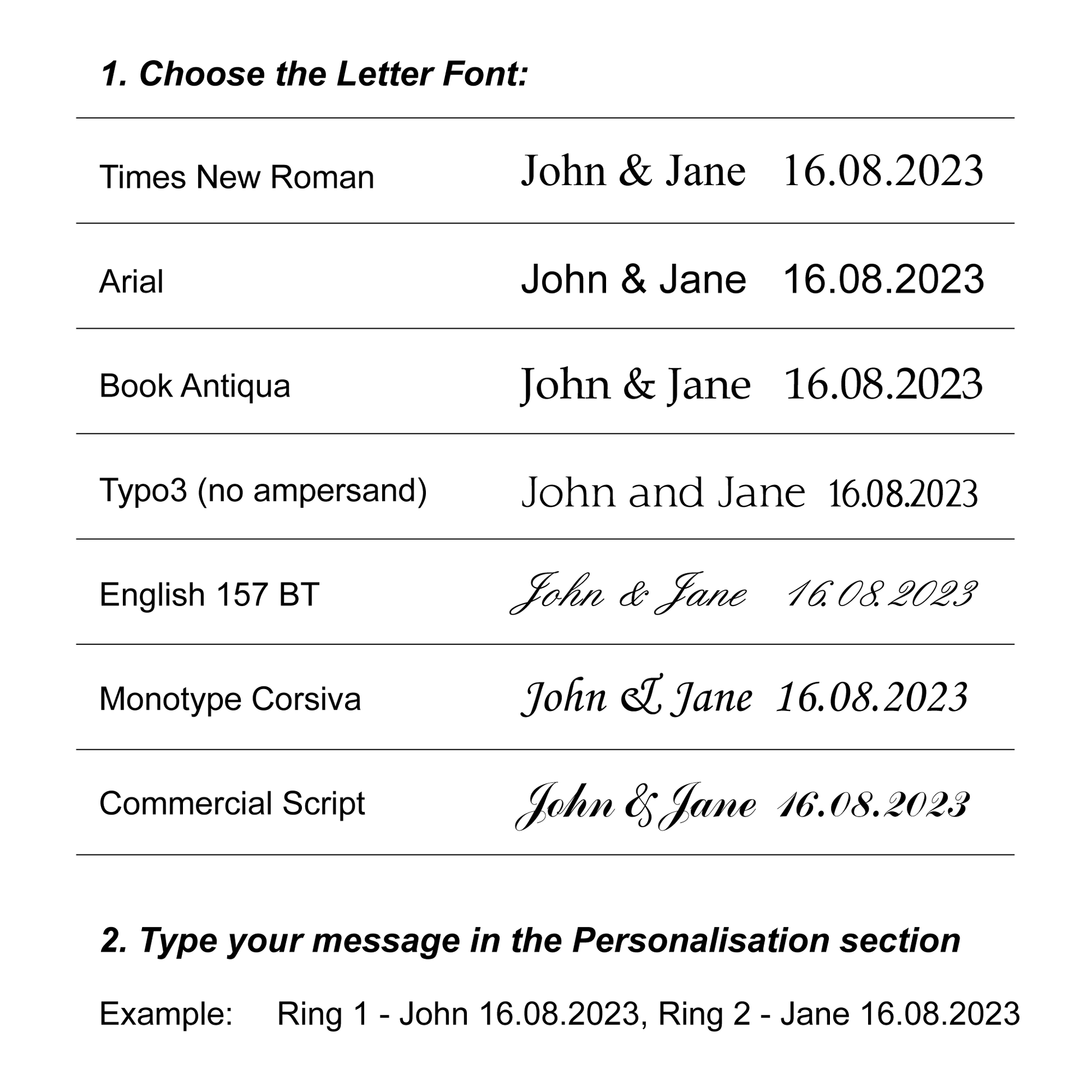 • An engraved ring is a customised item and cannot be returned or exchanged. It can still be resized, but the engraving may not survive the resizing process. So please keep reading the Ring Sizing section below about how to get a perfect fit.